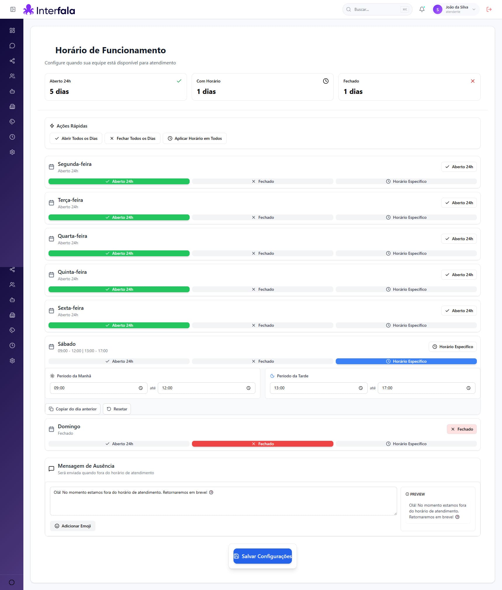 Configure horários de atendimento e mensagens automáticas