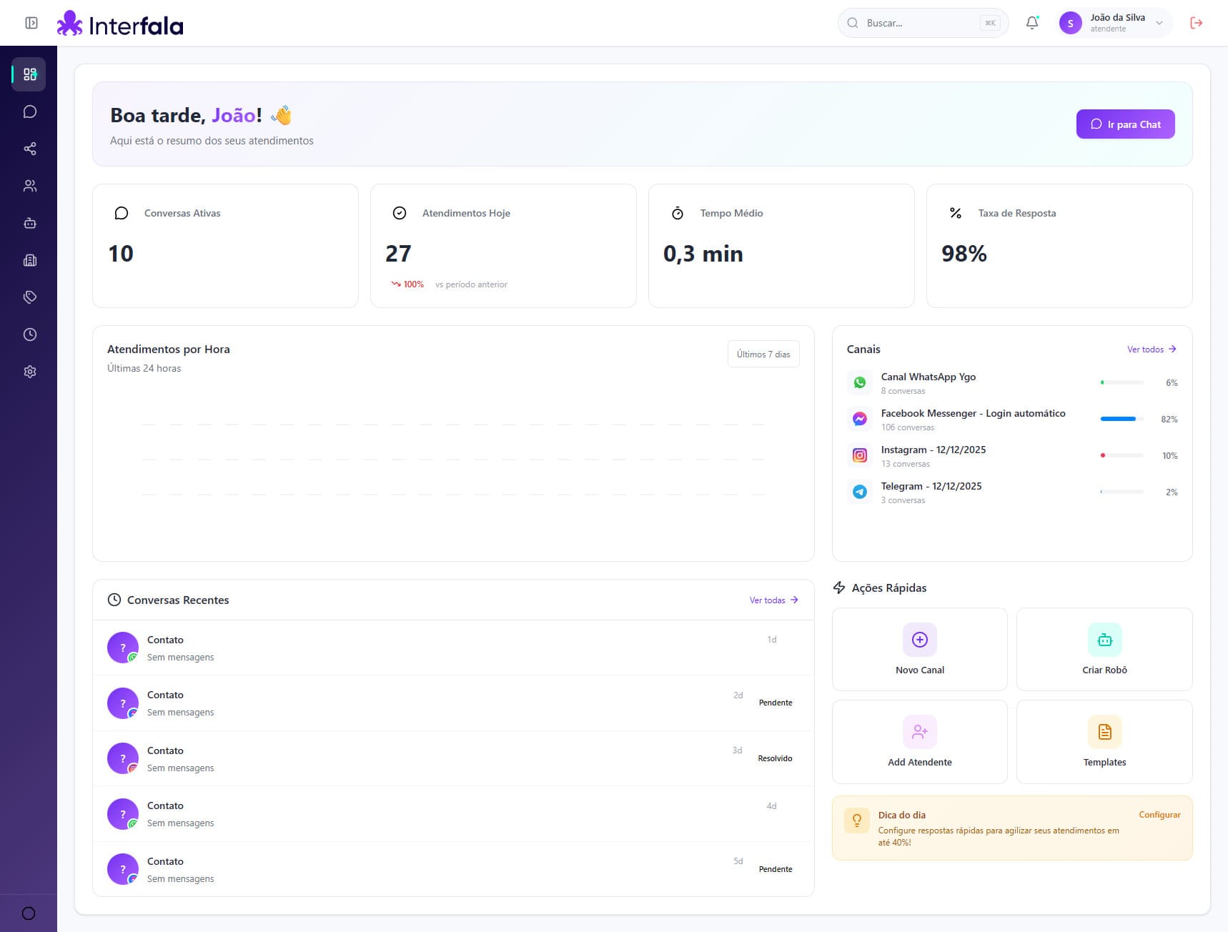 "A Interfala revolucionou nosso atendimento. Conseguimos responder 3x mais rápido e a satisfação dos clientes aumentou significativamente."